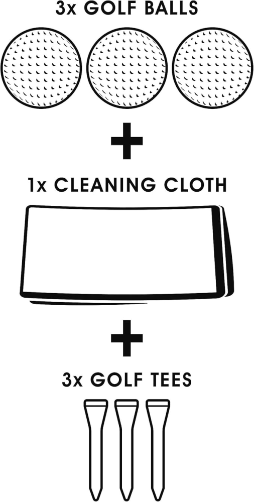 تحتوي المجموعة على 3 كرات جولف، و3 تي شيرتات خشبية، وقطعة قماش للتنظيف، وحقيبة كروية مصنوعة من قماش متين مقاوم للتمزق.