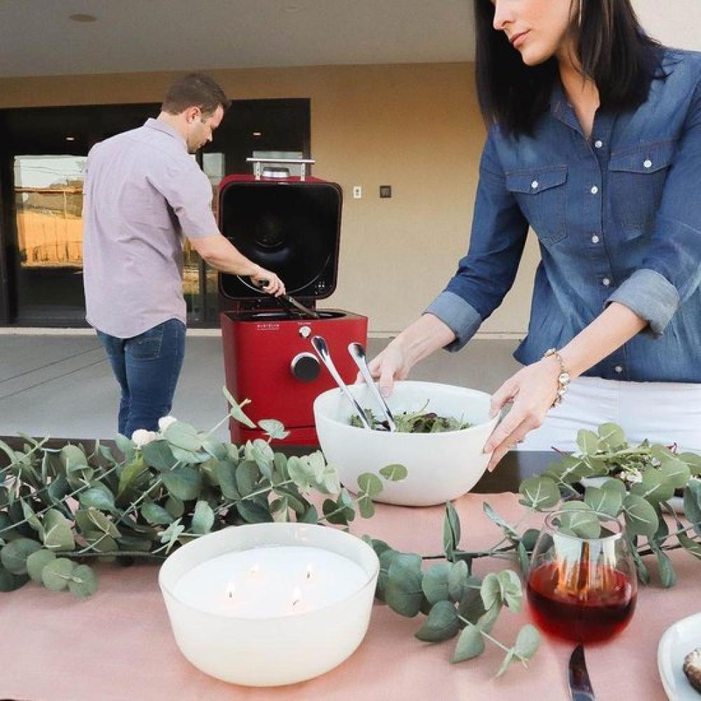 The 4K barbecue from Everdure has a robust yet lightweight aluminum construction. Everything can be prepared on the cooking surface, with a diameter of 46 centimeters, from whole brisket to New York steak to pizza. The shape of this barbecue also ensures even heat distribution. The cooking range of this Everdure goes from long and slow at about 110 degrees to intense at more than 400 degrees. This means that the preparation options of this barbecue are endless. Despite this enormous heat inside the barbecue, the outside remains relatively cool to the touch thanks to a double-walled and insulated construction.